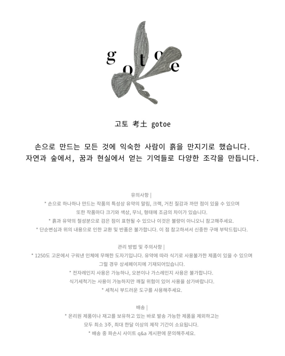 * 고토, 부아 숍에 입점된 모든 브랜드의 제품을 모방하여 전시 또는 판매를 하실경우 부정경쟁방지법 상품도용으로 처벌을 받으실 수 있습니다.